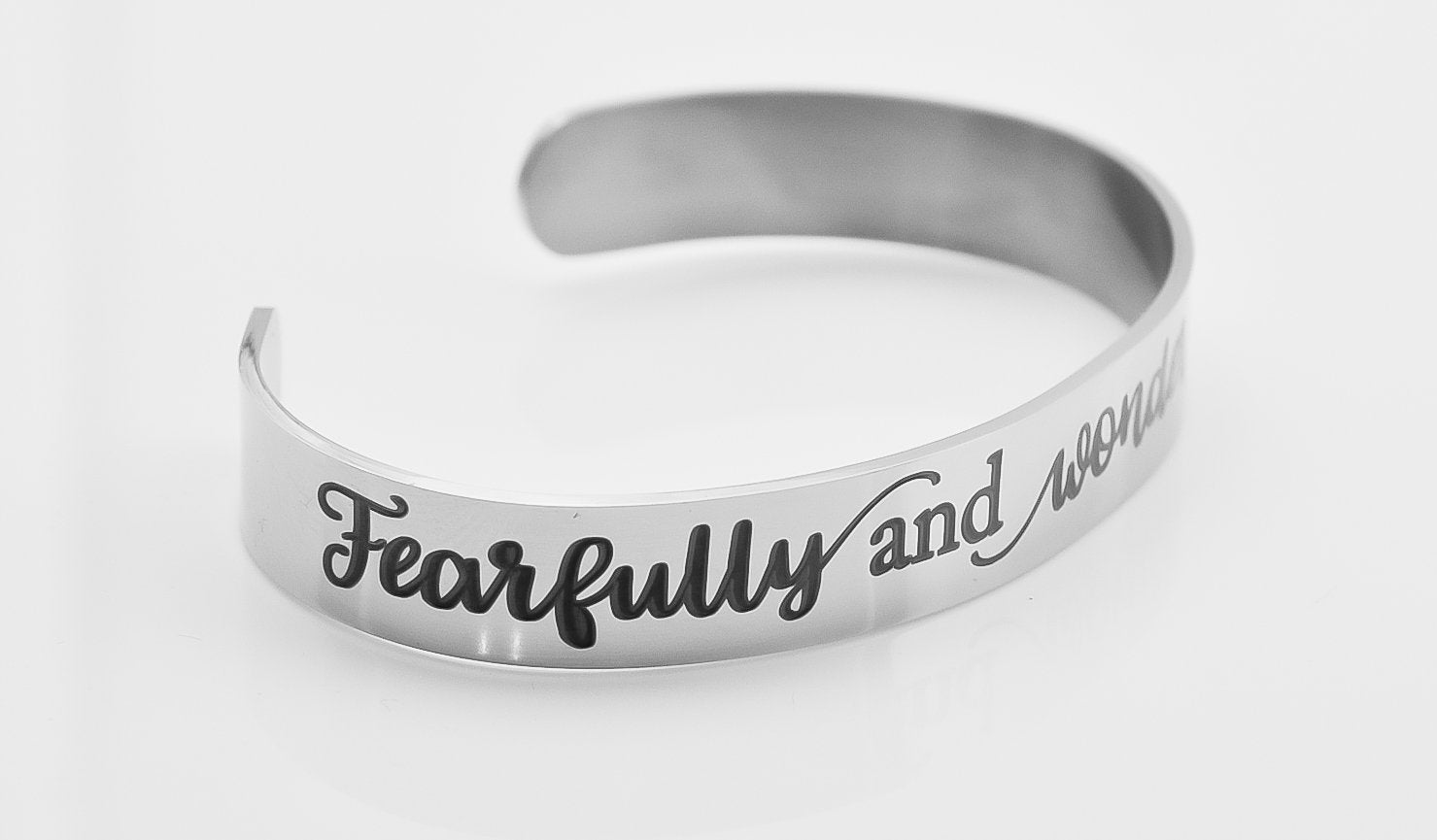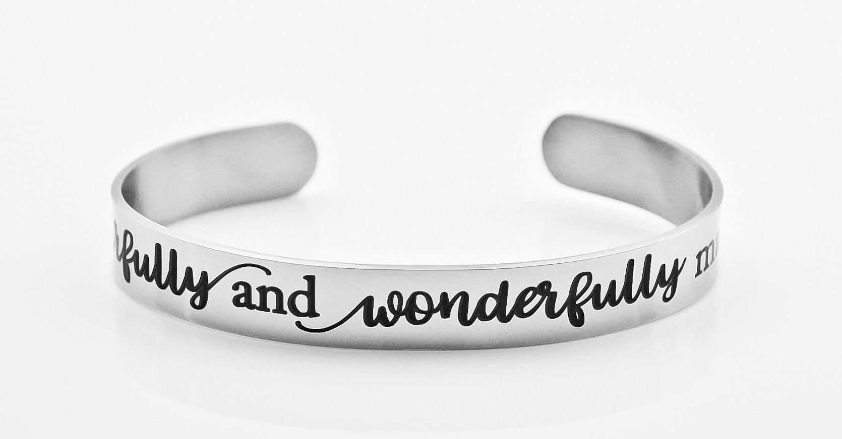 fearfully and wonderfully made, Psalm 139:14 - bracelet, personalized cuff, faith, custom bracelet, gift for girl, bible verse