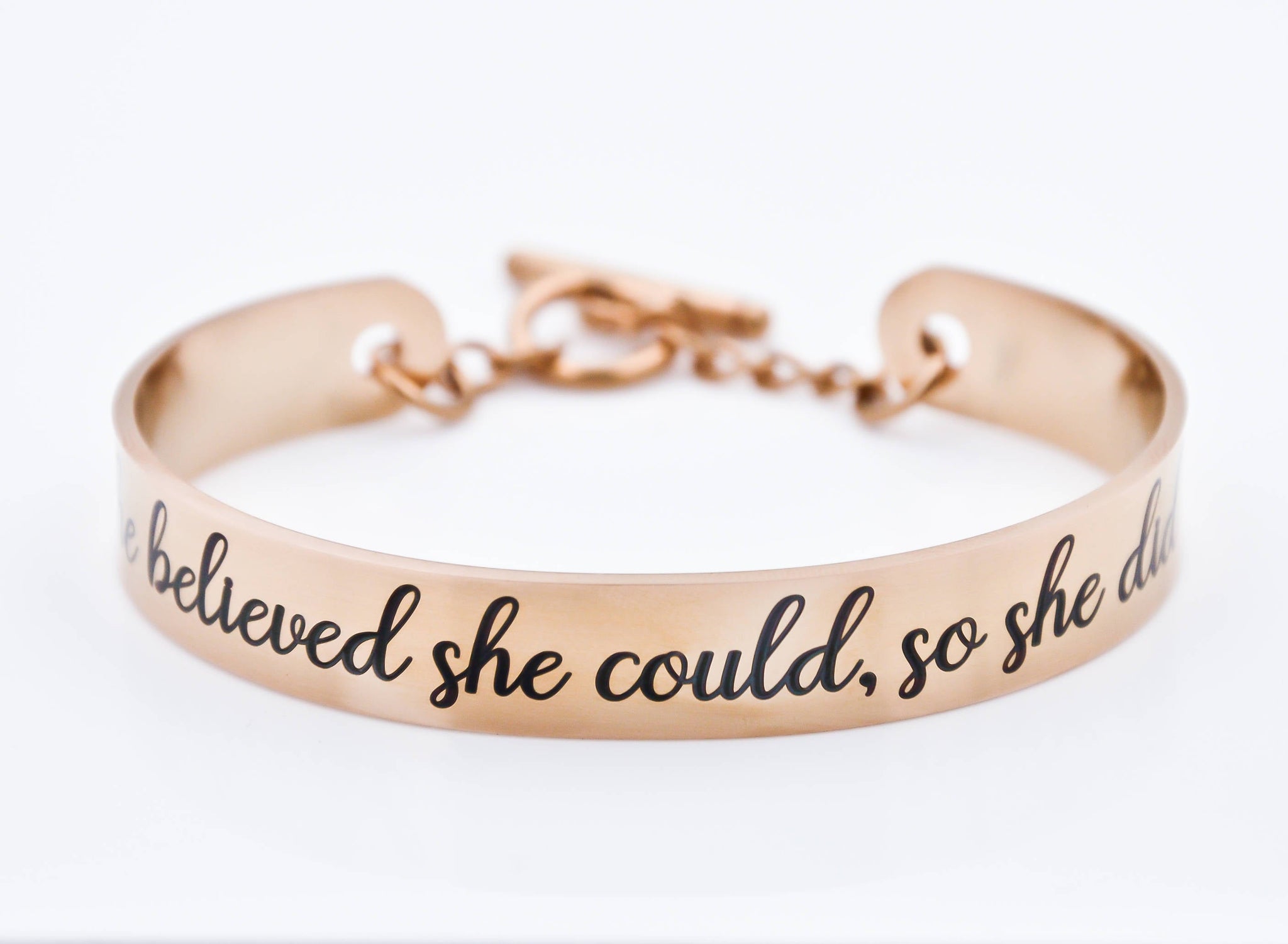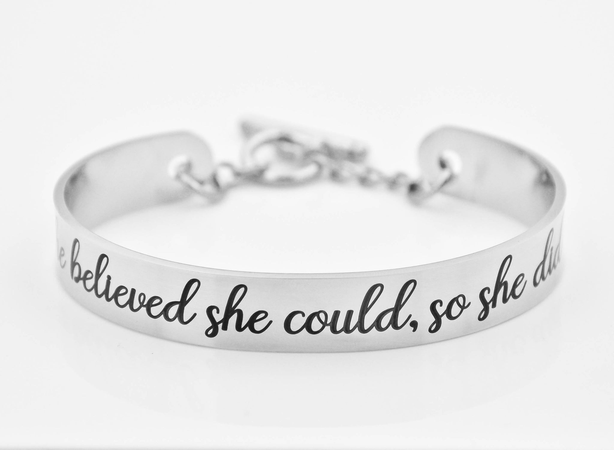 She believed she could so she did, bracelet, inspirational jewelry for women, Thinking of you gift, motivational, keep going, strong